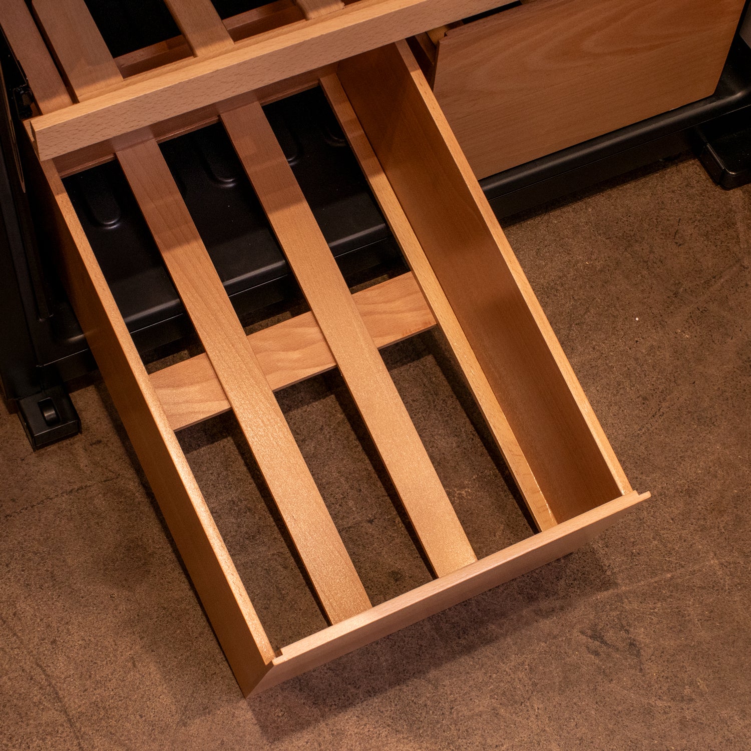 Glide-Out Wood Shelving