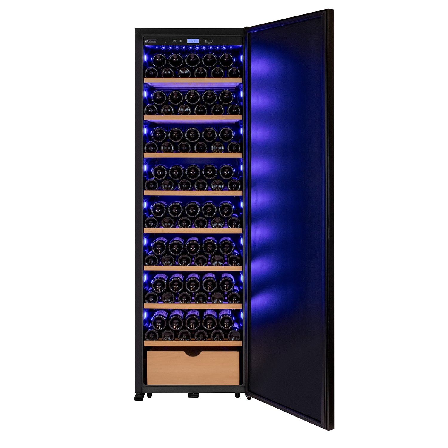 Cool blue light beautifully illuminates the interior, making finding the perfect bottle fast and easy. The lights emit much less heat than an incandescent bulb which means they can be left on to store your collection without creating a harmful hot spot that could affect your wine bottles.