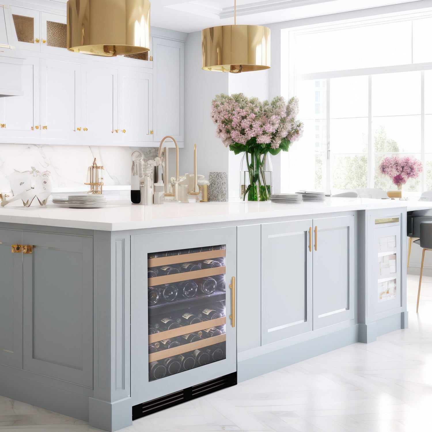 Customizable overlay panels (not included) can be applied to the front of this wine fridge to match the rest of your cabinetry. Enjoy the ultimate in customization; choose a door panel and decide exactly how your wine storage should look. Make your dream home complete with perfectly harmonious cabinetry.