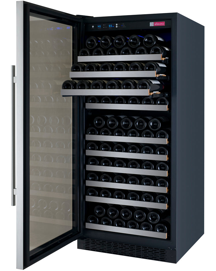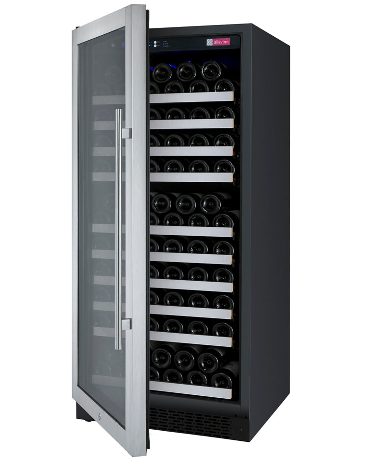 Allavino's exclusive FlexCount wine racking technology cradles bottles and is designed with vibration-reduction technology to protect aging wines. This unique shelving design allows for ultimate flexibility and versatility when it comes to storing a variety of bottle sizes and shapes. Easy gliding shelves allow for easy access to your collection without disrupting the delicate wine maturation process.