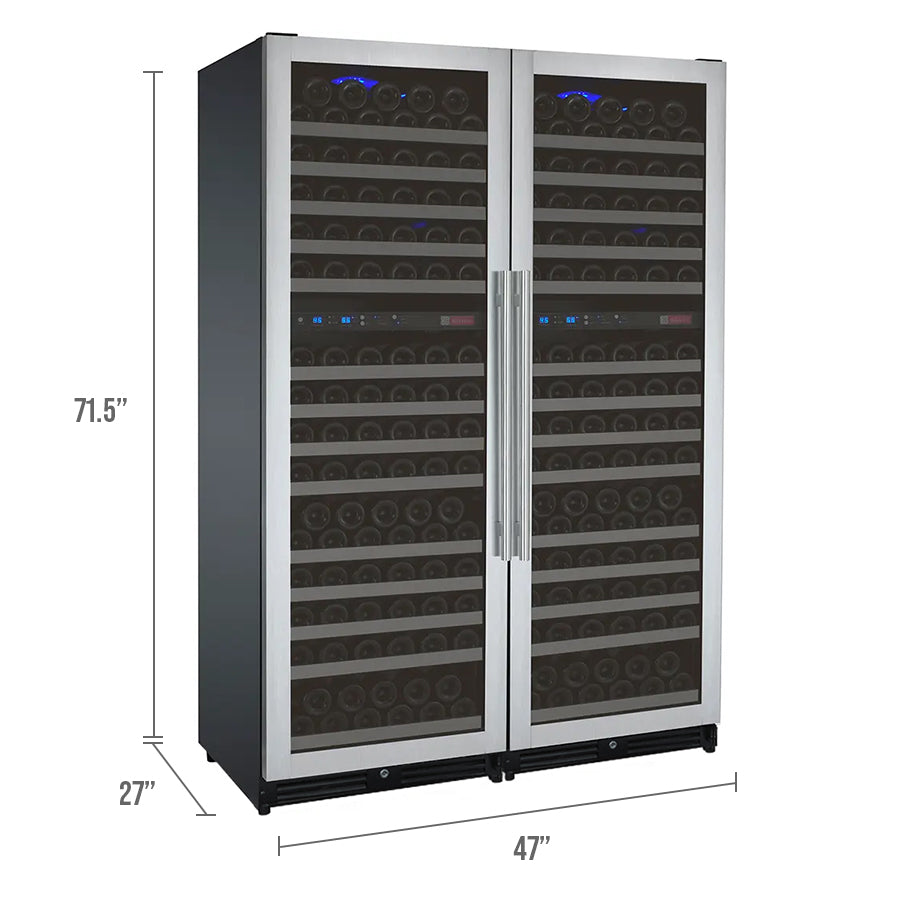 Made up of two dual zone 172 bottle units with opposite hinged doors, Allavino's FlexCount II Series 2X-VSWR172-2S20 Four Zone Wine Refrigerator with Tru-Vino Technology can be used as a stylish freestanding unit or built into your cabinetry for seamless wine storage.