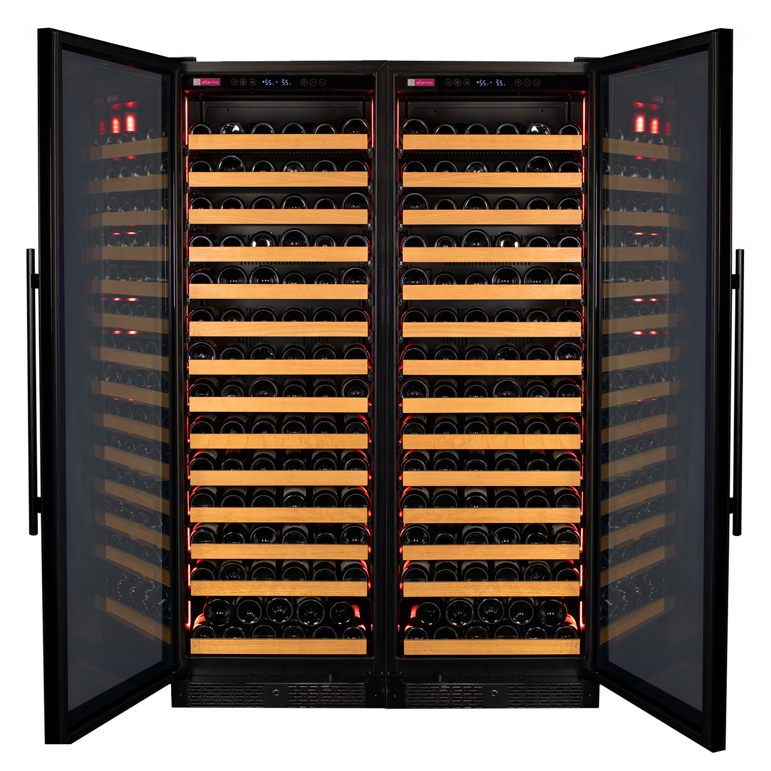 Allavino Reserva Series 2X-VSW16371S-1BG wine refrigerator stylishly stores your wine, thanks to the seamless stainless steel doors and customizable LED lighting Digital control panels allow you to precisely set the temperature between 41 and 64 degrees Fahrenheit on each side. Reserva uses FlexCount shelving design gives you flexible storage options for up to 326 wine bottles. Energy efficient Tru-Vino Cooling Technology delivers precise temperature control with low vibrations and ultra-quiet operation. Designed for both built-in and freestanding use.