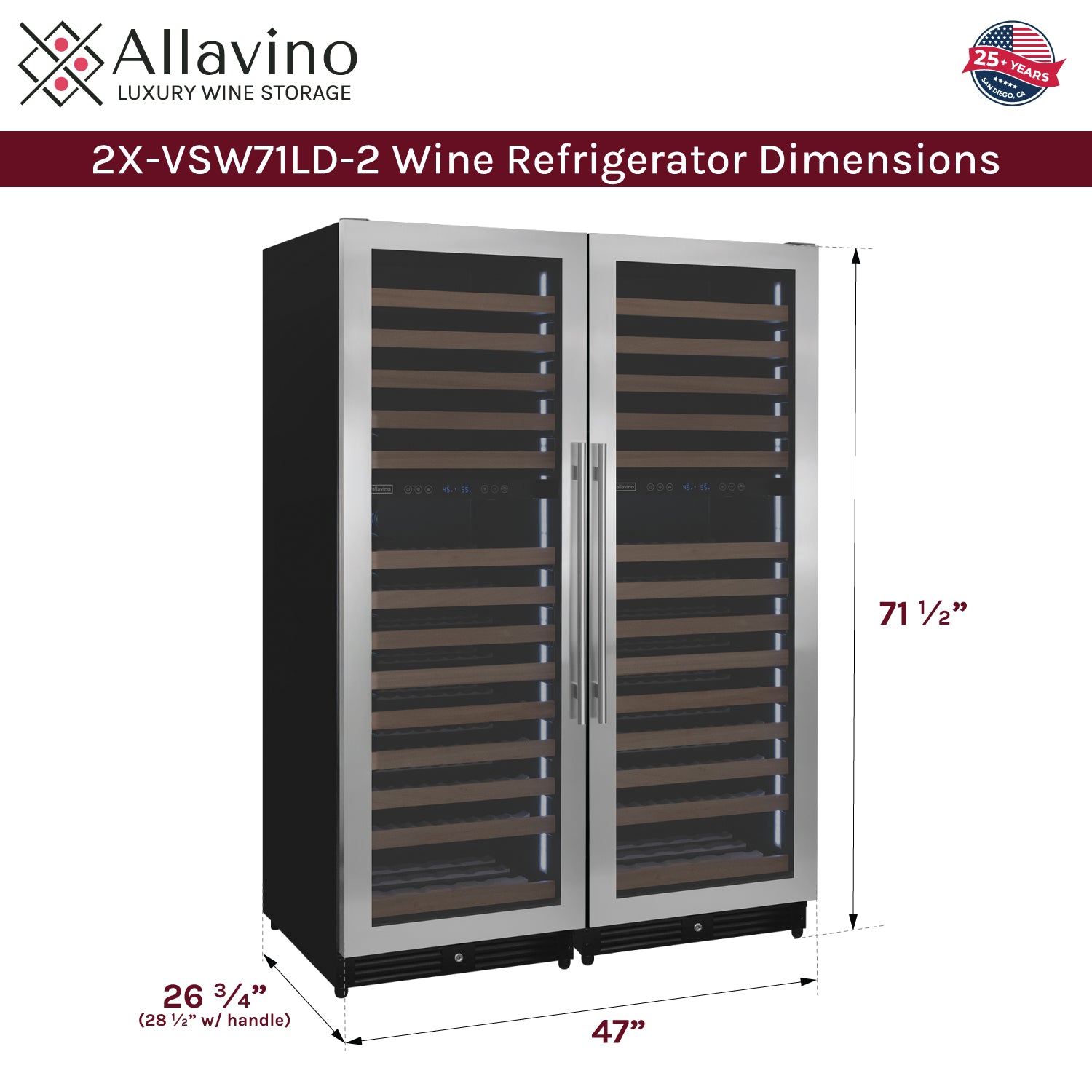 Allavino Reserva 2X-VSW71LD-2S wine refrigerator dimensions