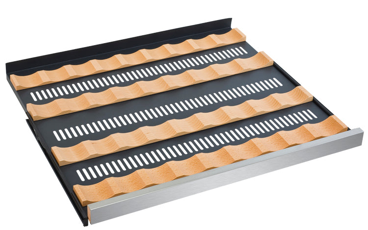 Allavino’s exclusive FlexCount wine racking technology incorporates revolutionary metal shelves that are strong enough to hold bottles without sagging, yet thin enough to maximize the available storage space. Wood slats refine each shelf and gently cradle each bottle to prevent harmful vibrations from affecting your wine. Each shelf glides out smoothly on ball bearing tracks, allowing easy access to your collection without disrupting the delicate wine maturation process.