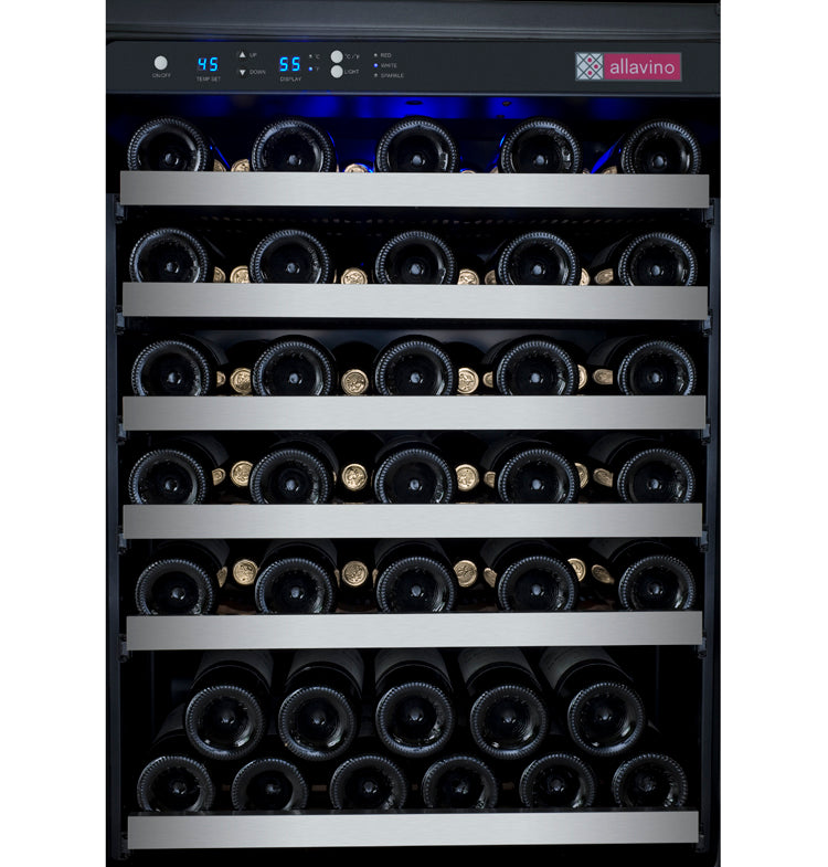 Allavino's exclusive FlexCount wine racking technology cradles bottles and is designed with vibration-reduction technology to protect aging wines. This unique shelving design allows for ultimate flexibility and versatility when it comes to storing a variety of bottle sizes and shapes. Smooth gliding shelves allow for easy access to your collection without disrupting the delicate wine maturation process.