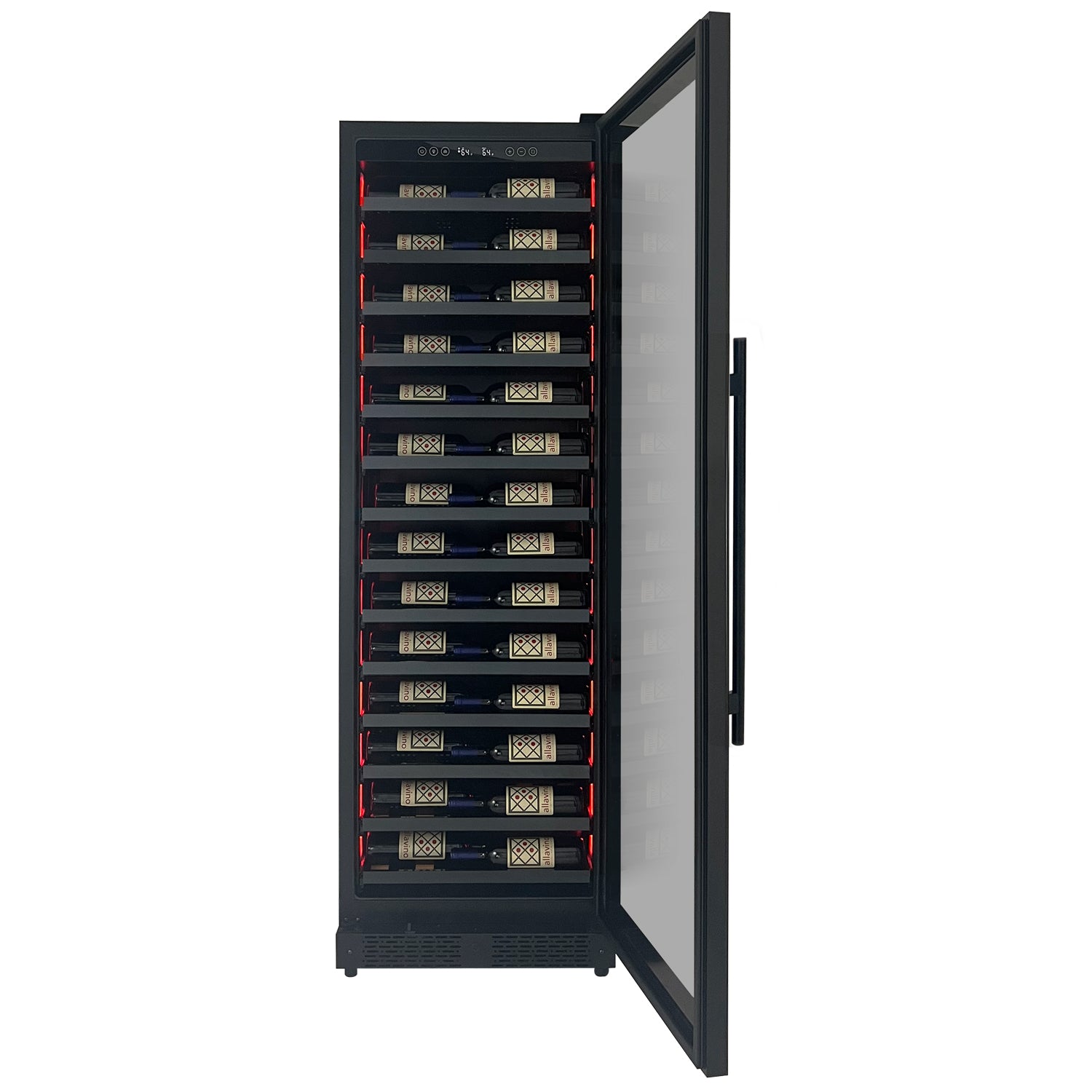 Elegant protective black glass frames the door of this cooler, and allows a clear view of the wines inside. The double-paned glass sandwiches inert gas that insulates the interior, keeping damaging heat away from your collection. A low-emissivity coating on the panes prevents UV light from getting inside as well.
