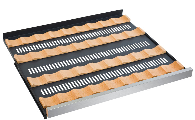 Allavino's trademarked FlexCount shelves provide the ultimate flexibility in storage options while maximizing capacity. The unique thin design allows more space between shelves for maximum storage, but also has a durable metal construction that resists sagging over time. Precision ball bearing tracks allow the shelves to smoothly glide outward for easy access to bottles.