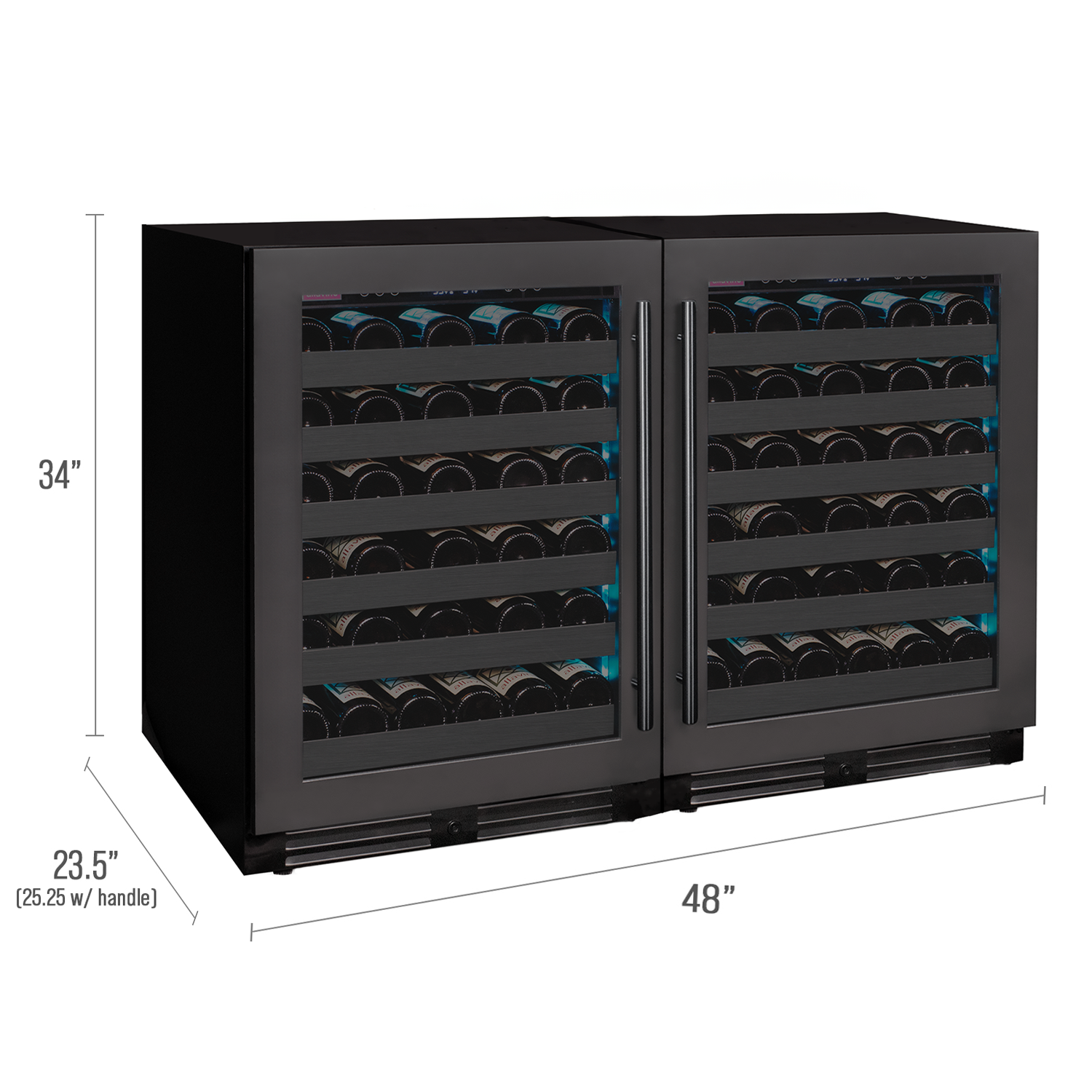 The Allavino Reserva 2X-BDW5034S-1BS Dual Zone Side-by-Side Wine Refrigerator Cooler with Tru-Vino® temperature control technology makes it easy to store up to 100 wine bottles of various sizes, and can be built into your cabinetry for seamless wine storage.