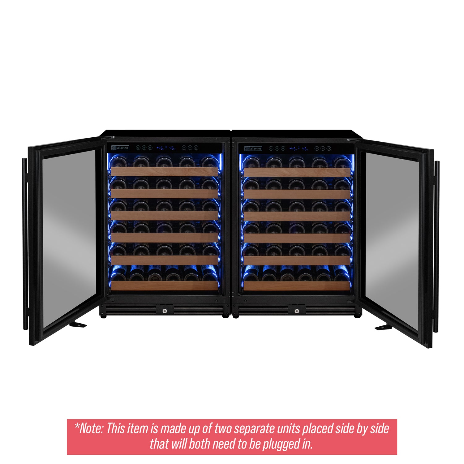 Reserva Series 102 Bottle Dual Zone Built-in Luxury Wine Refrigerator with Black Metal Doors - Side-by-Side
