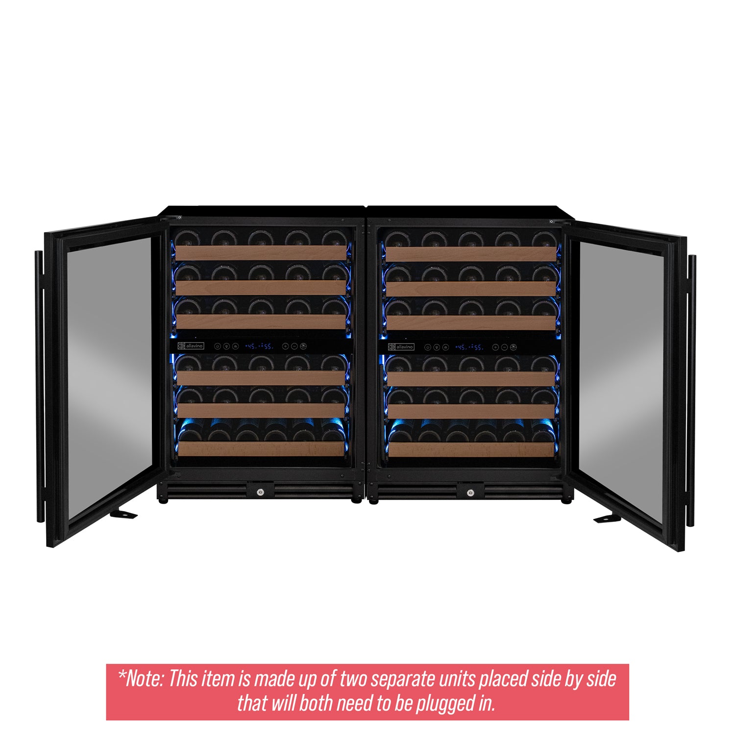 Reserva Series 102 Bottle Four Zone Built-in Luxury Wine Refrigerator with Black Metal Doors - Side-by-Side