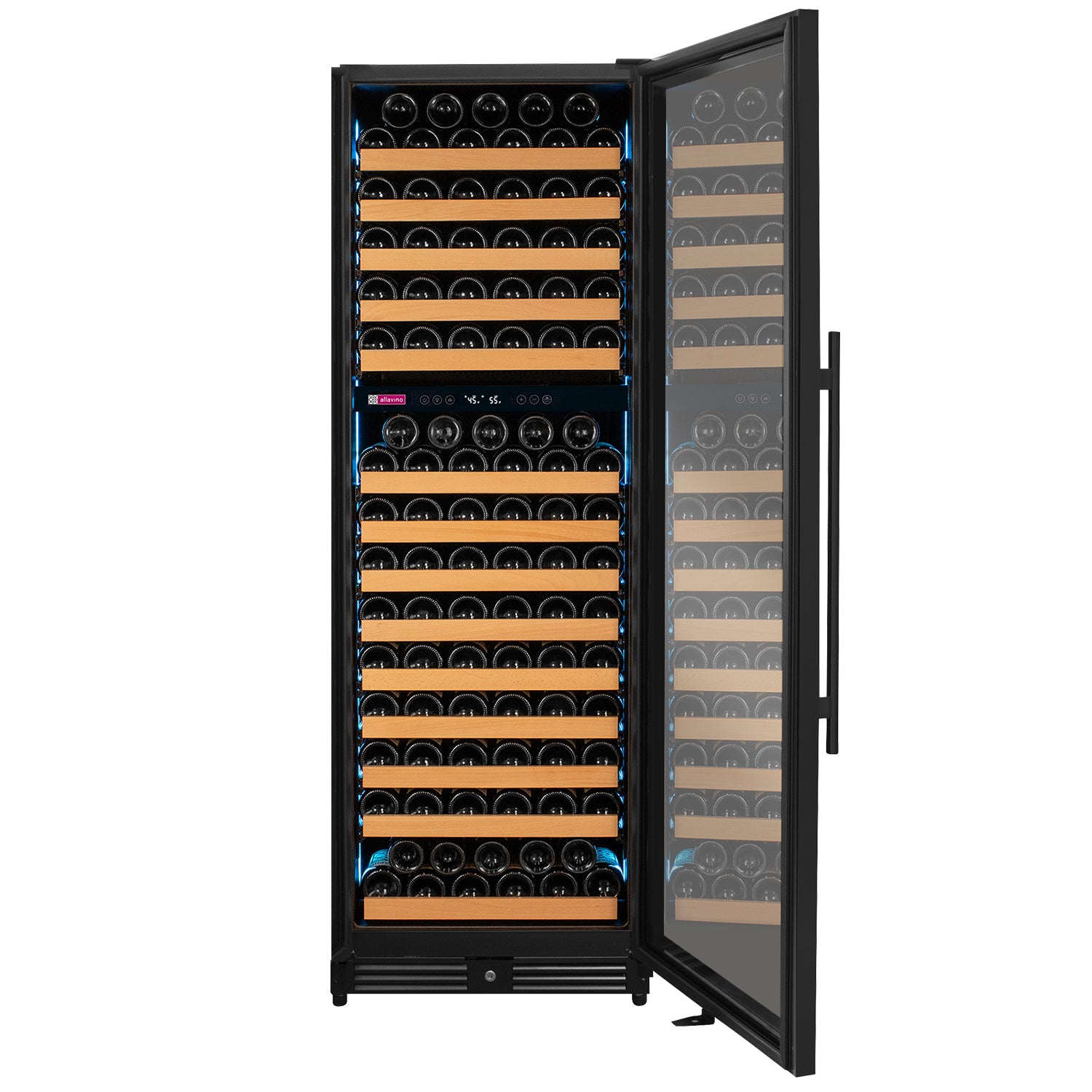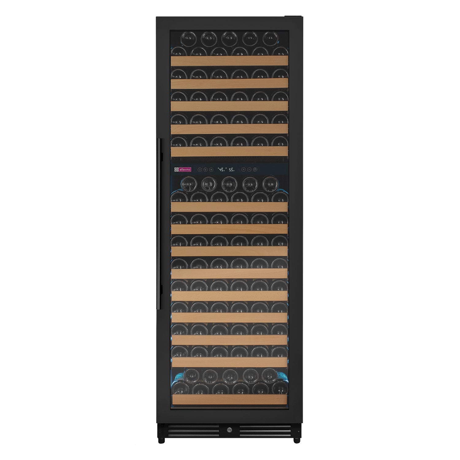 Allavino's exclusive FlexCount shelves give you ultimate flexibility and accessibility, regardless of bottle size. Spacing between each shelf gives you enough clearance to not worry about racks scraping your bottle labels. Wood slats refine each shelf to cradle your wine bottles and are designed with vibration-reduction technology to prevent harmful vibrations from excessive movement and damage.