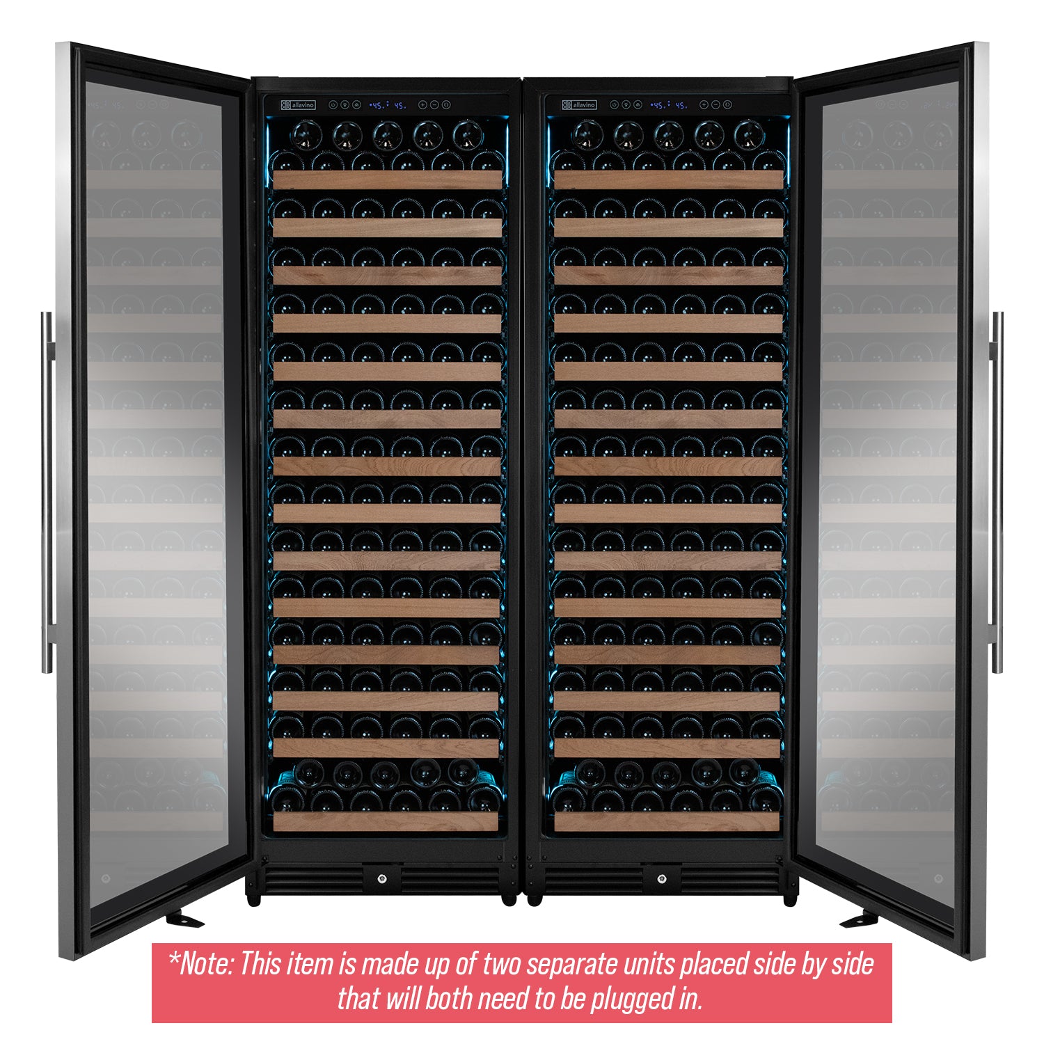 Allavino's 2X-VSW16371S-1S Reserva Series 326 Bottle 71" Tall Dual Zone Stainless Steel Side-by-Side Wine Refrigerator with Tru-Vino Temperature Control Technology is made up of two separate single zone wine refrigerators placed side by side. It gives you flexible storage options for up to 326 wine bottles.