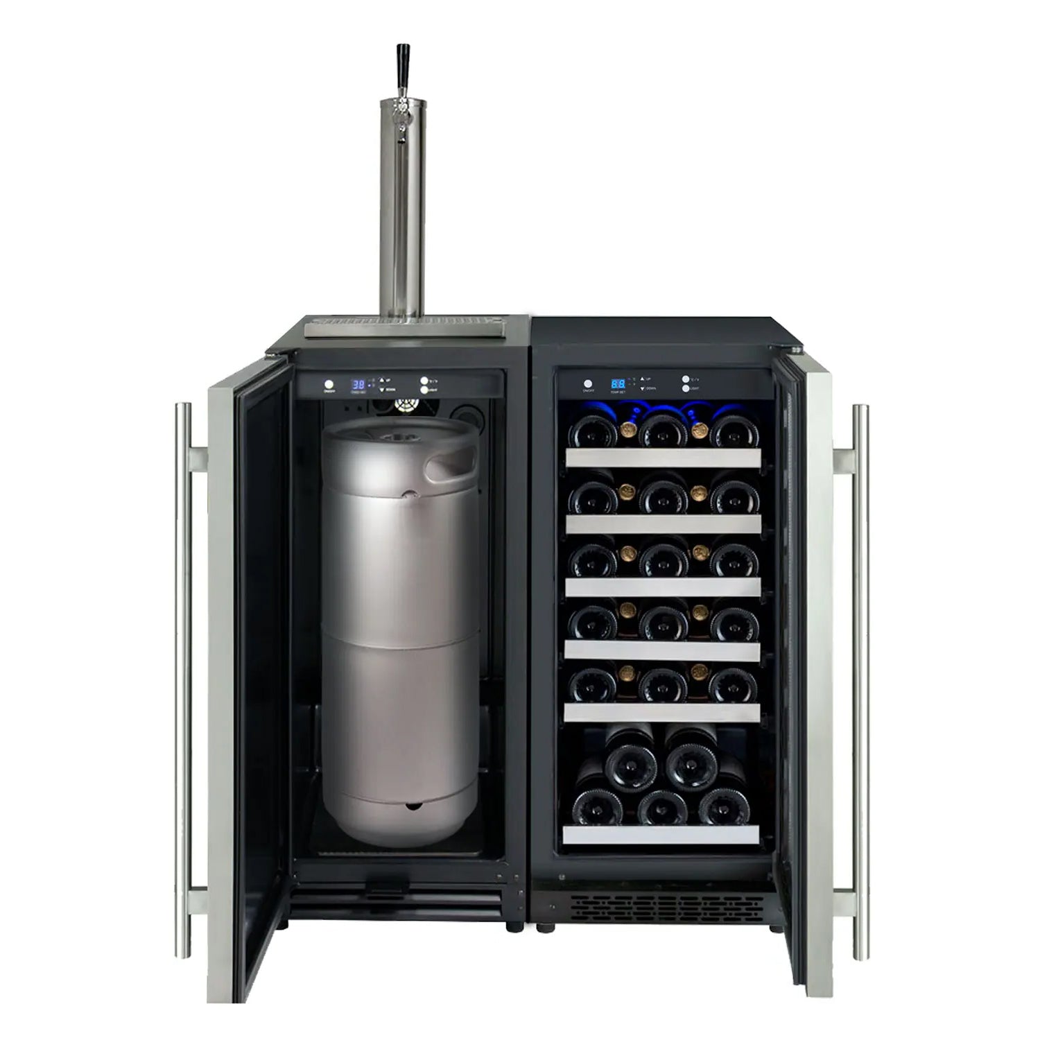 The VS15-1WK-L Built-In Undercounter Side-by-Side Single Zone Wine Cooler and Single Faucet Keg Dispenser is the ultimate beverage center to upgrade your home bar or kitchen. This sleek and sophisticated kegerator and wine refrigerator combination lets you have the best of both worlds. Cold beer on tap and perfectly chilled wine is within arms reach with this beverage center that can hold up to 7 gallons of draft beer and up to 30 bottles of wine. This unit is perfect for daily use and entertaining, providing you with a variety of beverage options. The unit is designed with a French door swing to easily access both the keg and wine bottles simultaneously. Digital temperature display for both sides allows you to easily maintain and control the temperature of your beverages. Manufactured by the industry leaders in the beverage industry, Kegco and Allavino, these units include only premium parts with all stainless steel contact and all parts are serviceable.