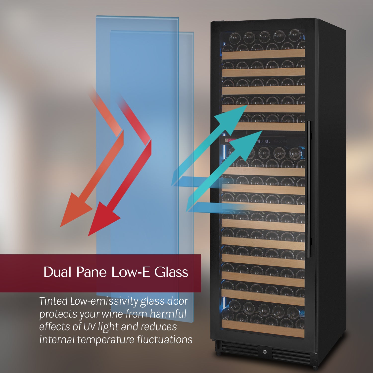 Reserva Series 172 Bottle Dual Zone Built-in Wine Refrigerator with Black Metal Door - Left Hinge