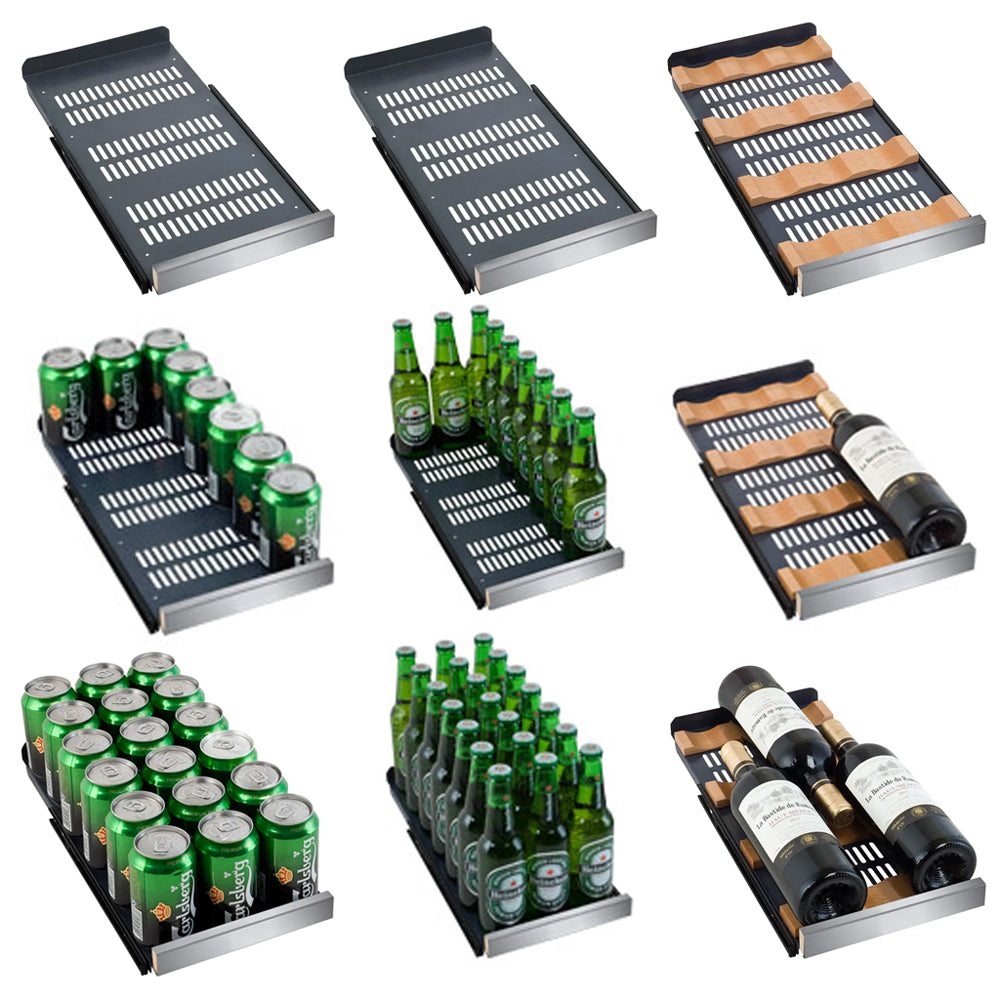 Allavino's trademarked FlexCount shelves provide the ultimate flexibility in storage options while maximizing capacity. The unique thin design allows more space between shelves for maximum storage, but also has a durable metal construction that resists sagging over time. Precision ball bearing tracks allow the shelves to smoothly glide outward for easy access to bottles.
