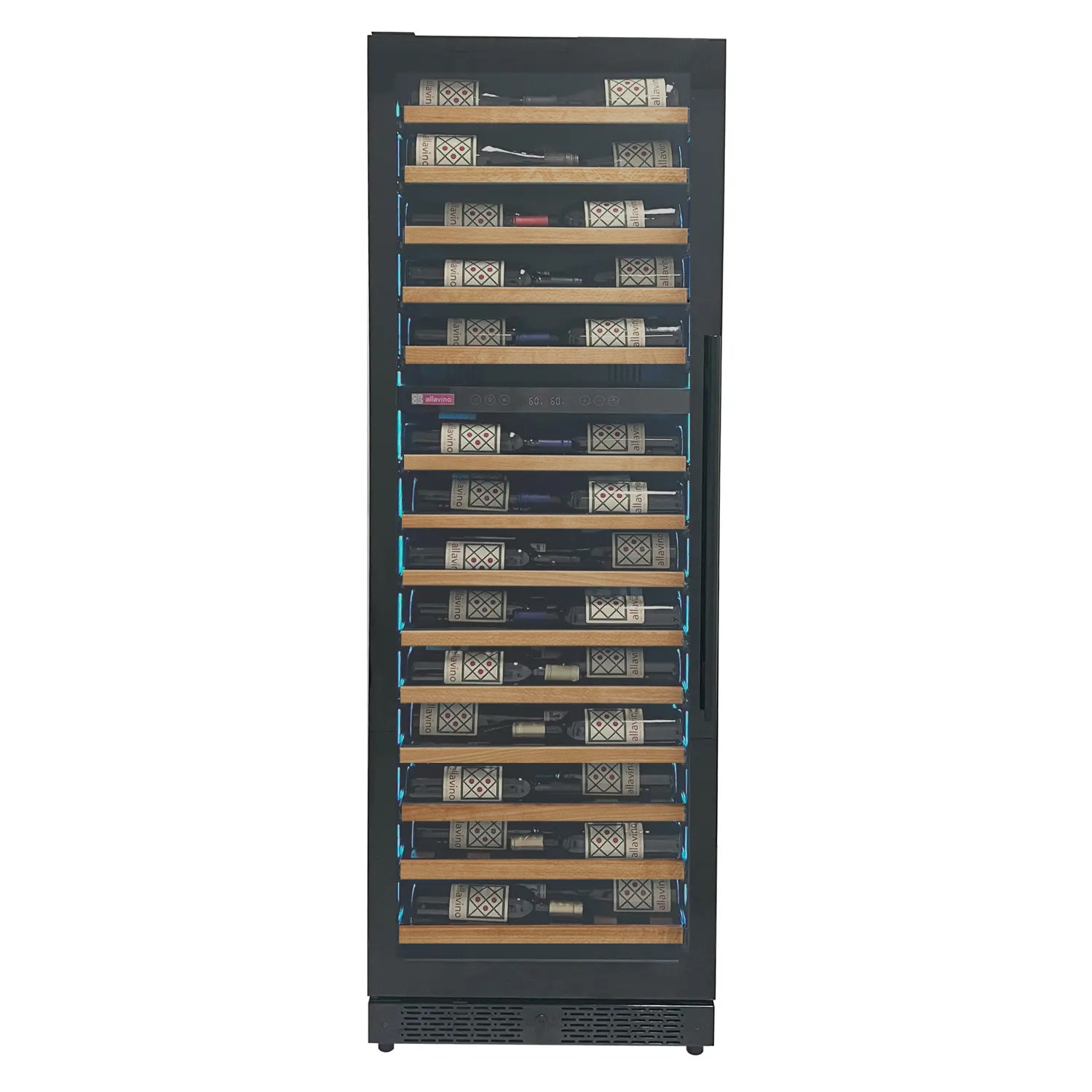 Elegant protective black glass frames the door of this cooler, and allows a clear view of the wines inside. The double-paned glass sandwiches inert gas that insulates the interior, keeping damaging heat away from your collection. A low-emissivity coating on the panes prevents UV light from getting inside as well.