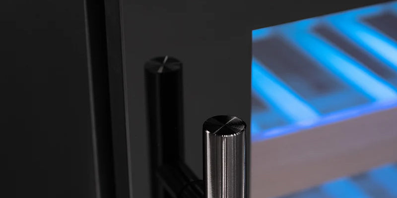 Elegant protective black glass frames the door of this cooler, and allows a clear view of the wines inside. The double-paned glass sandwiches inert gas that insulates the interior, keeping damaging heat away from your collection. A low-emissivity coating on the panes prevents UV light from getting inside as well.