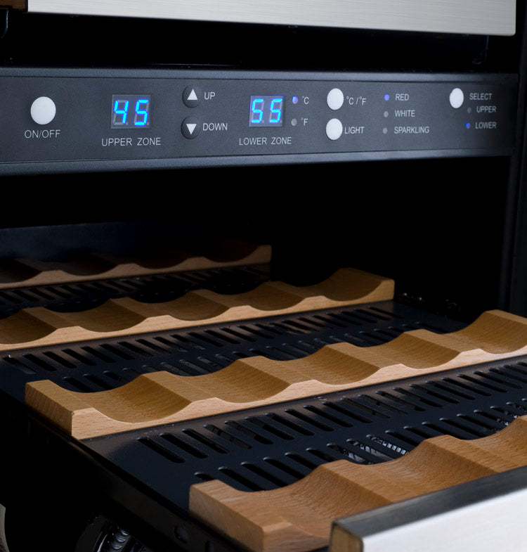 Easy-to-use physical button controls make it a snap to set your ideal wine temperature. A large, backlit digital display lets you monitor the temperature within quickly and easily. Once the ideal temperature is set, exclusive temperature control technology maintains temperature with precision. Automatic systems adjust compressor fan power dynamically to maintain your temperature setting with near zero temperature fluctuations.