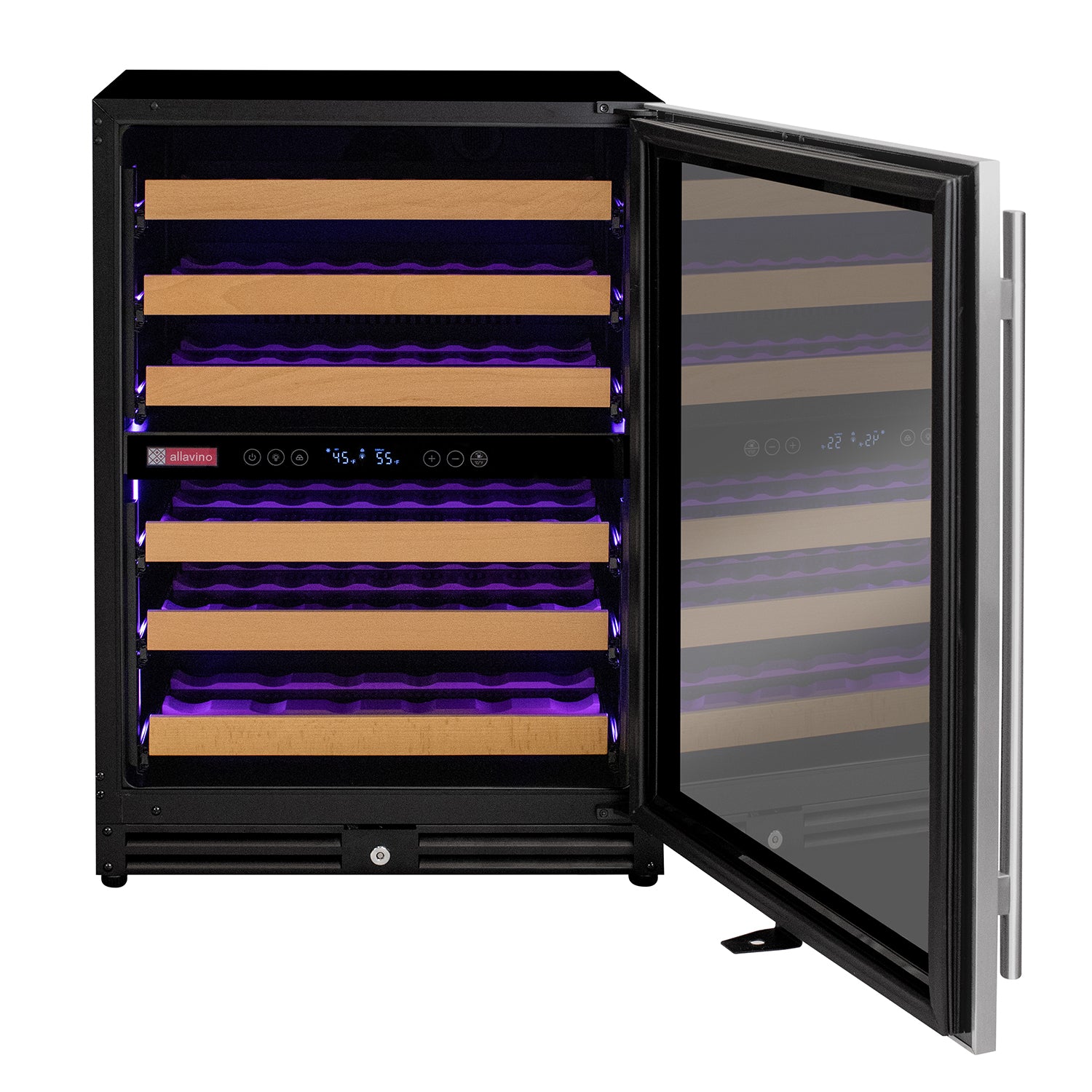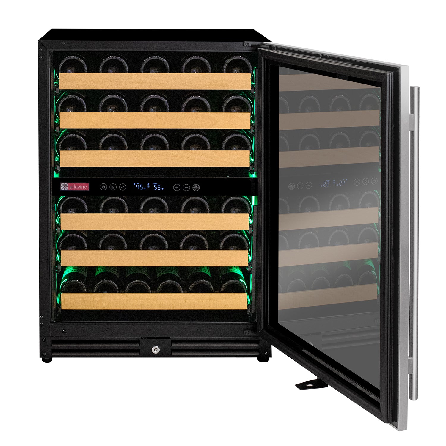 Allavino's exclusive FlexCount shelves give you ultimate flexibility and accessibility, regardless of bottle size. Spacing between each shelf gives you enough clearance to not worry about racks scraping your bottle labels. Wood slats refine each shelf to cradle your wine bottles and are designed with vibration-reduction technology to prevent harmful vibrations from excessive movement and damage.