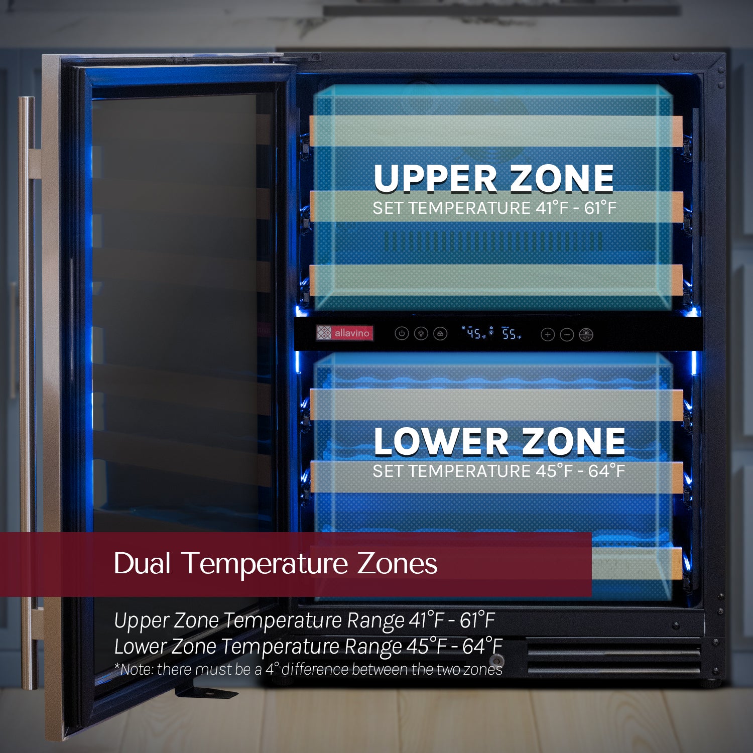 Store both red and white wines with two independently controlled temperature zones. Separate panels give you more precise control over the temperature in each zone.