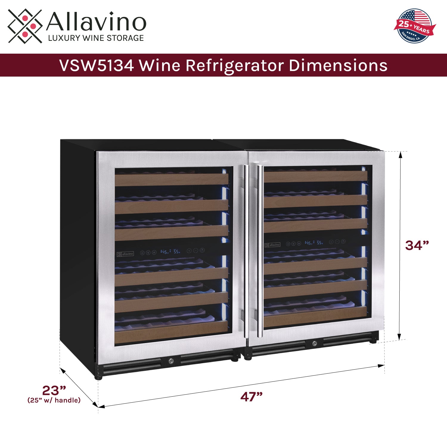 Allavino's exclusive FlexCount shelves give you ultimate flexibility and accessibility, regardless of bottle size. Spacing between each shelf gives you enough clearance to not worry about racks scraping your bottle labels. Wood slats refine each shelf to cradle your wine bottles and are designed with vibration-reduction technology to prevent harmful vibrations from excessive movement and damage.