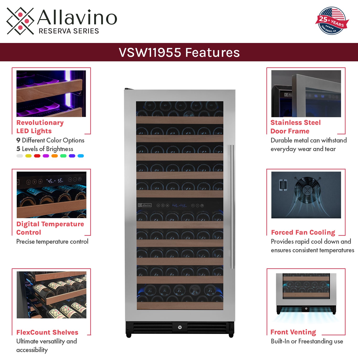 Allavino reserva VSW11955D-2SL stainless steel dual zone wine refrigerator
