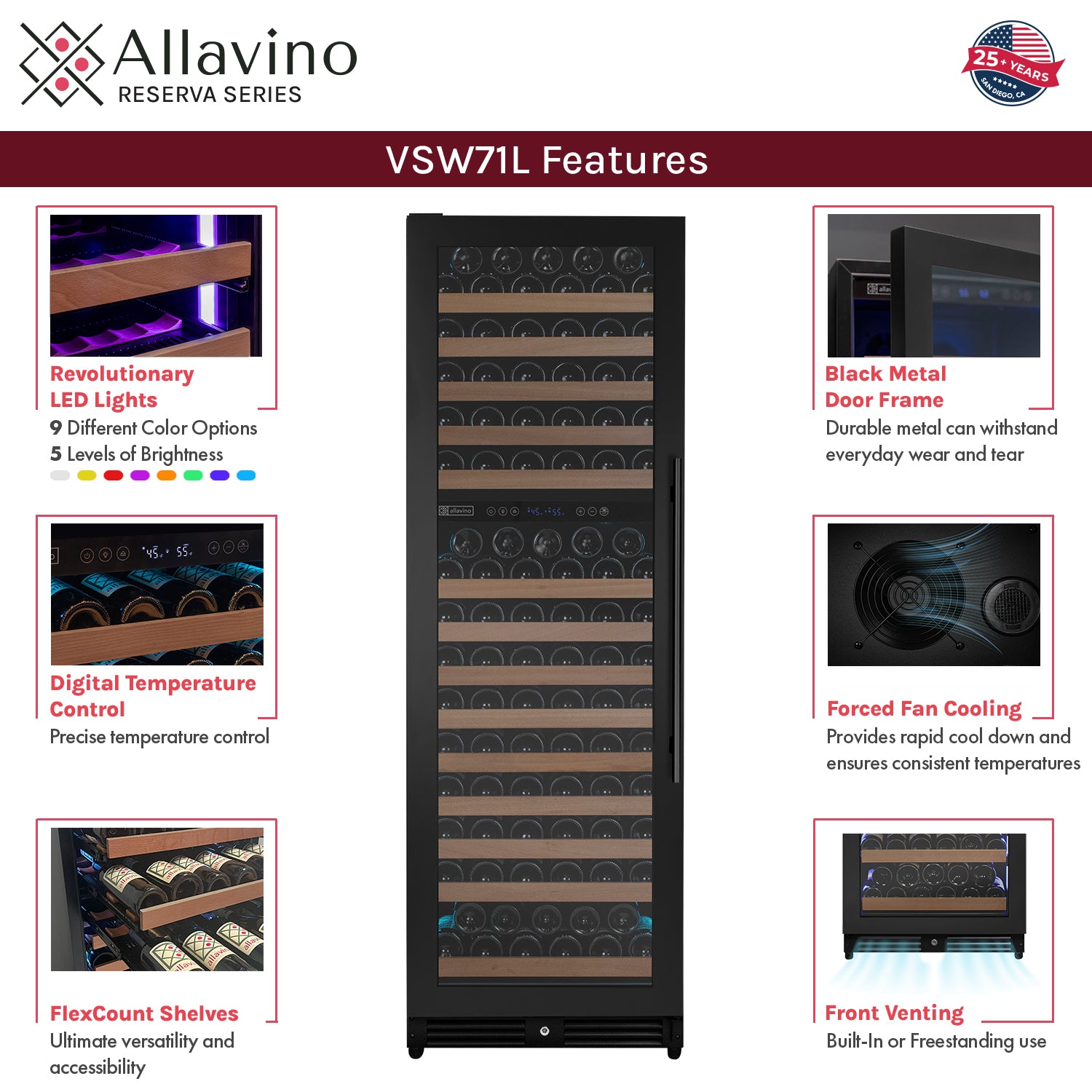 Allavino Reserva VSW71LD-2BL LED wine refrigerator features