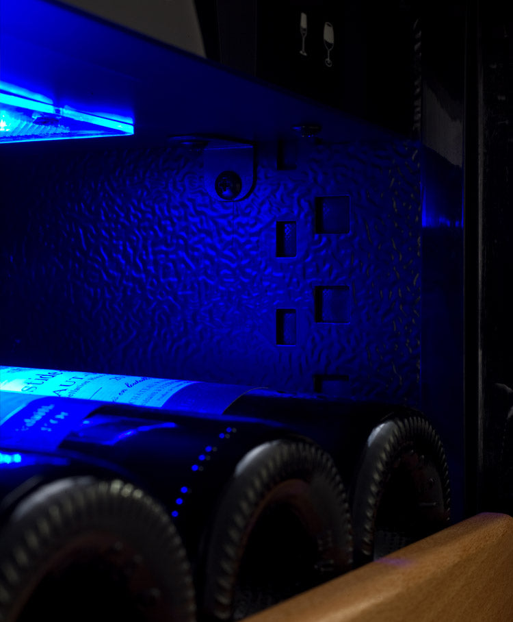 At the push of a button, you can activate cool blue lighting to elegantly illuminate your collection. These lights are cooler than standard lighting, preventing harmful hot spots from forming. LEDs are more energy-efficient as well, reducing the cost of energy your cooler consumes as it protects your wines.